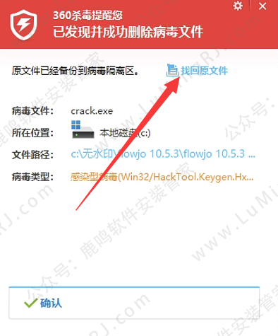 1、点击【找回原文件】。(若没有这个提示,跳到本教程第4步,从360杀毒软件里还原)