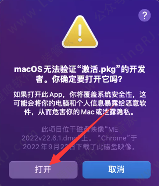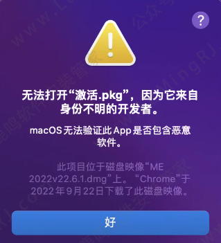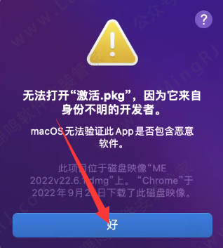 特别说明 :教程以【激活.pkg】为例,其他软件出现该问题,解决方式一样。